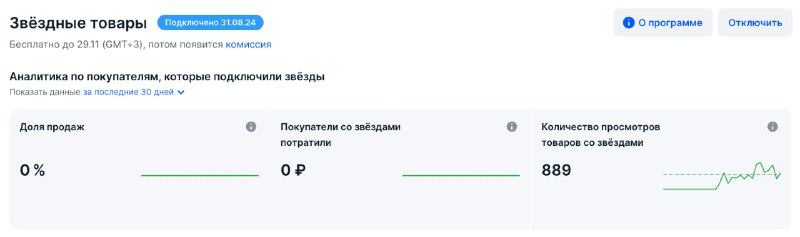 Кроме этого добавил браслет в звёздные товары озона, теперь его можно покупать за кэшбек. Думаю, покупку за баллы многие воспринимают как подарок, поэтому браслет могут брать чаще. Однако и тут аналитика озона не показала продаж.