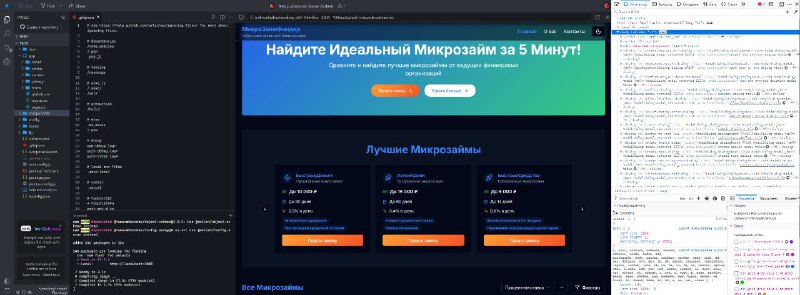Касательно микрозаймов и в целом проектов. Друг посоветовал софт, который генерирует, как минимум, клиентскую часть сайта за минуты. И не просто генерирует, а делает хороший, поддерживаемый код и дизайн. Это изменение игры. Так как я разрабатывал свой лендинг сам, мне уже не хочется его бросать. Поэтому просто брал куски кода, адаптировал и забирал себе, что очень ускорило разработку. Уже подписался на платный тариф: всего 900 рублей в месяц за "фронтенд за 10 минут", стоит того сверх меры. Скриншот, как это выглядит, ниже.